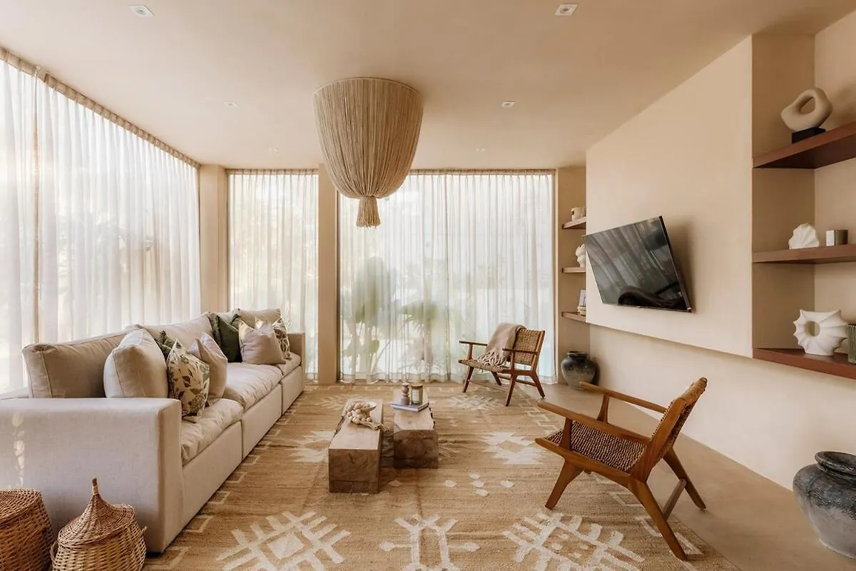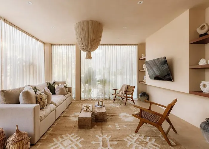 This Tulum villa is located approximately a 10-minute drive from such cultural sights as Cenote Crystal Museum. The fringed Paradise Beach can be reached about 3 miles from the villa.